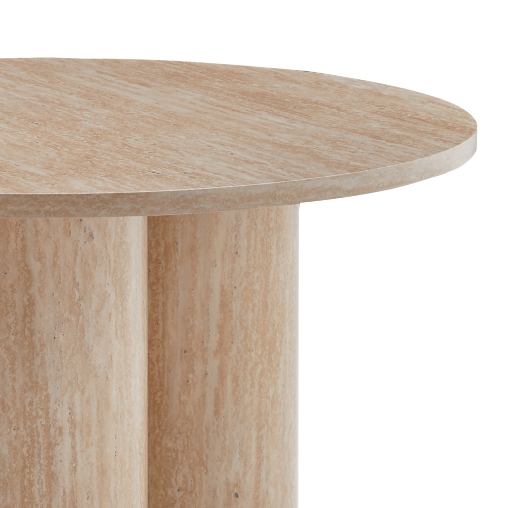 Mesa auxiliar redonda con tapa DM en acabado símil marmol. Se sirve desmontada en dos bultos.  A juego con mesa auxiliar Cronos 50 cm.