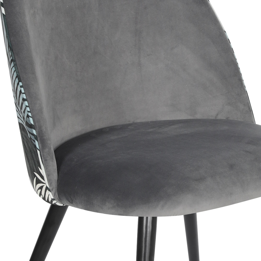 Tapizado en velvet gris oscuro con detalles florales en la parte trasera.