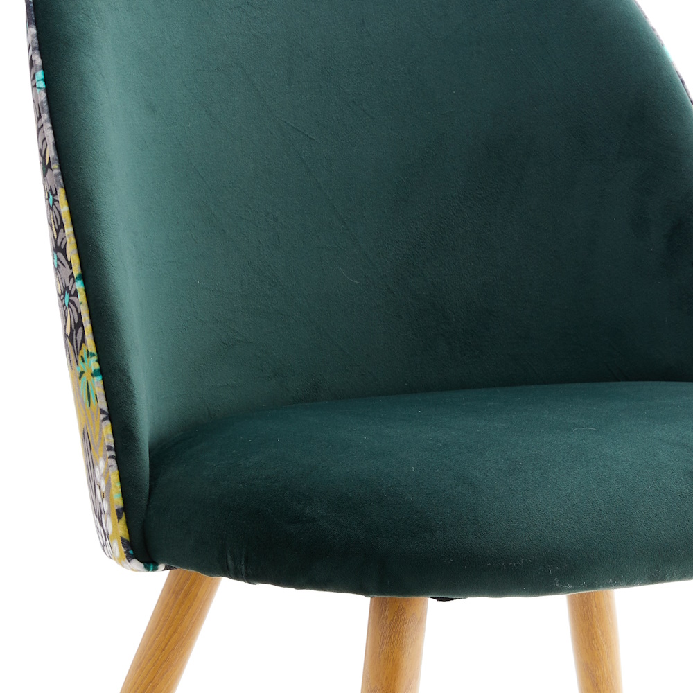 - Tapizado velvet verde/estampado en gris y amarillo, con patas acabado madera.
