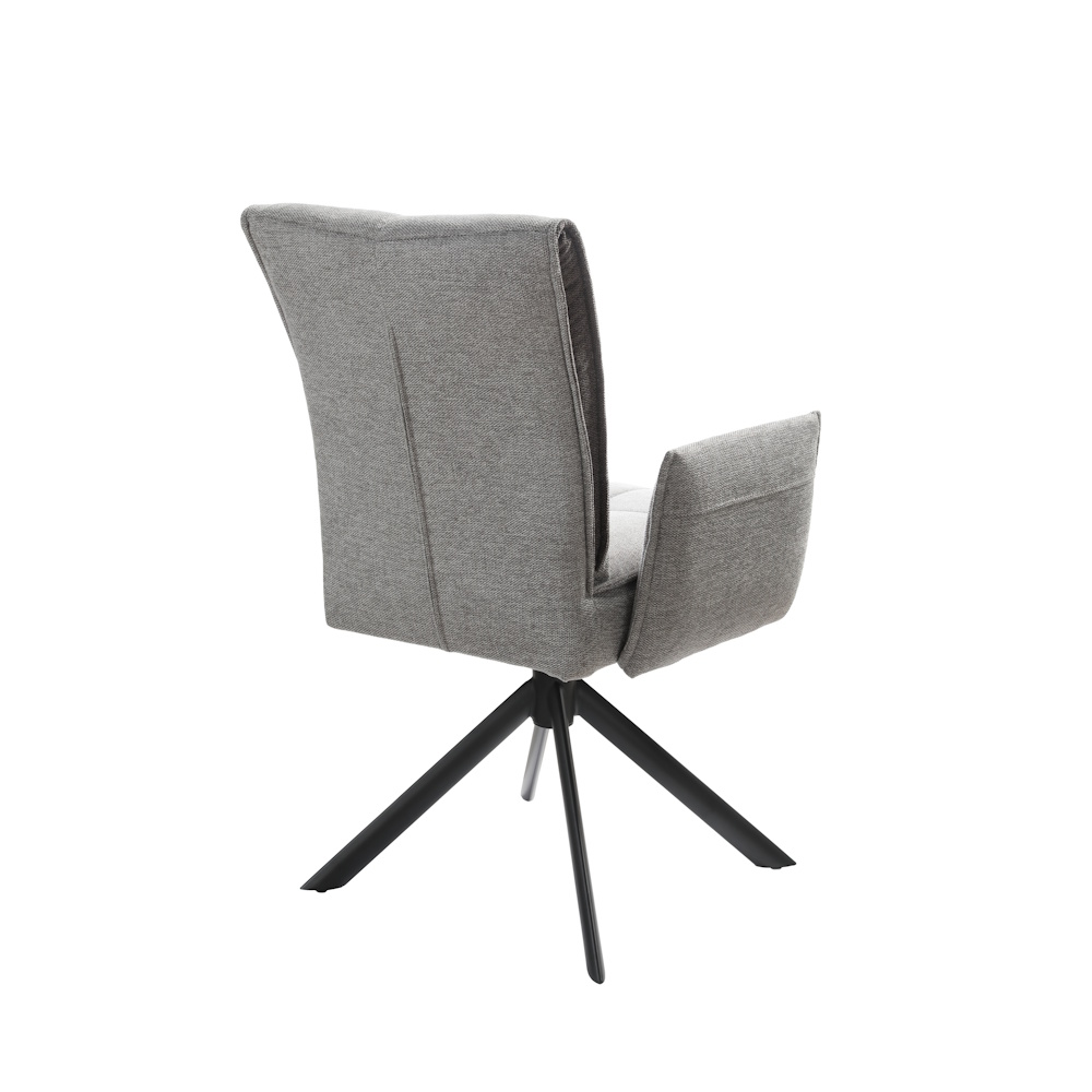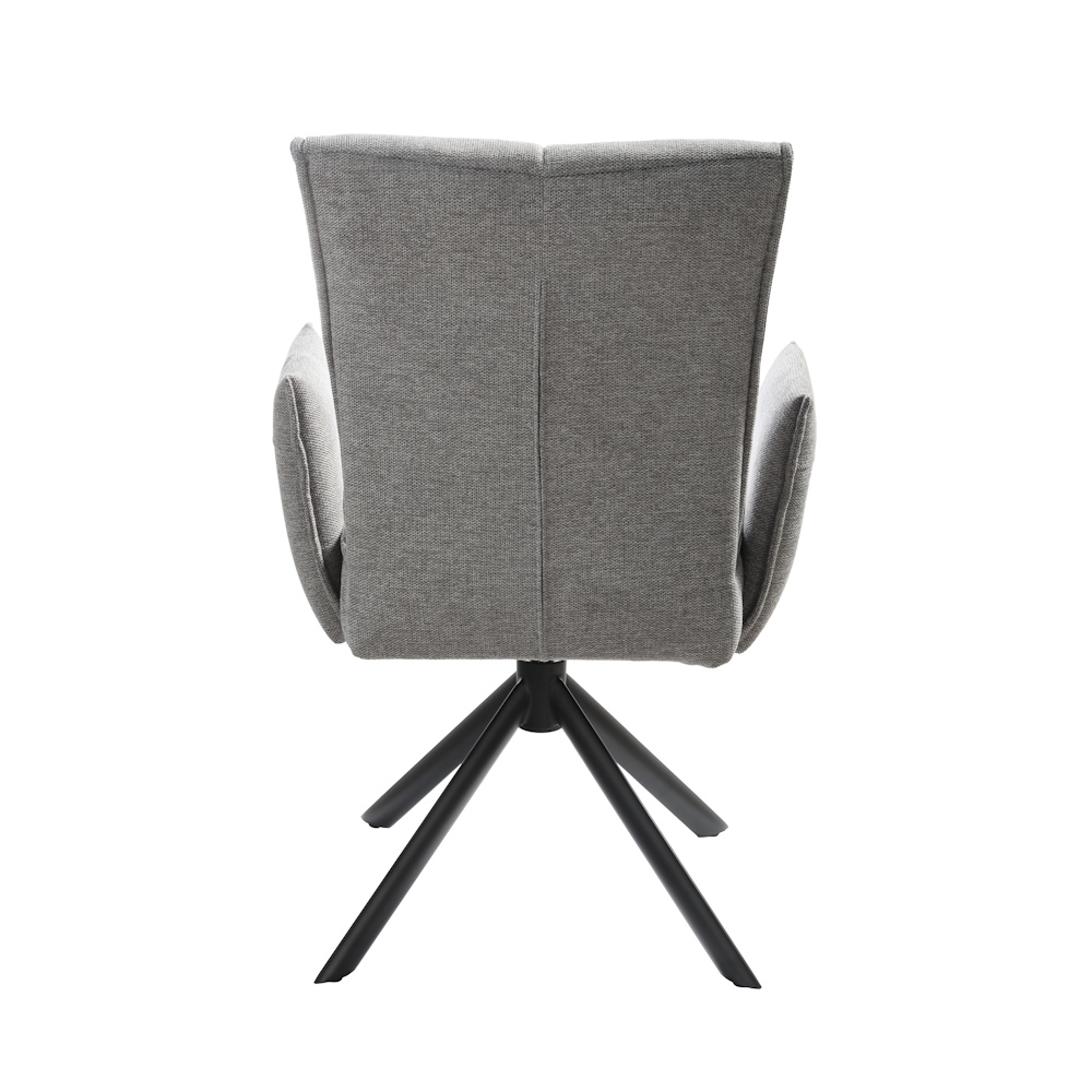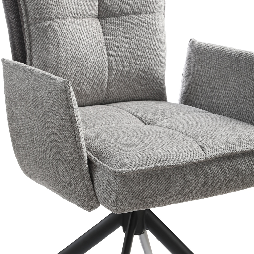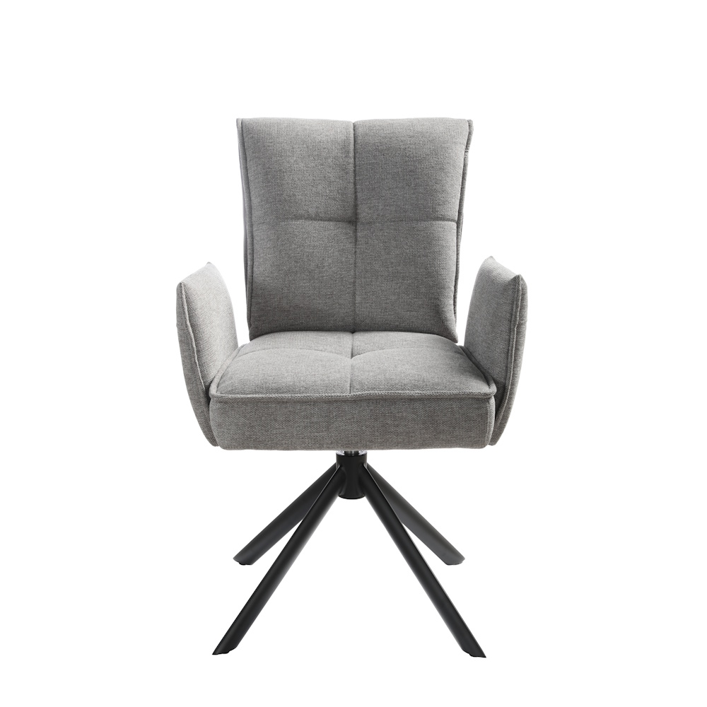 Silla tapizada en tela color gris oscuro, con muelle ensacado en asiento y pata metálica en color negro mate. Permite un giro de hasta 360º con recuperación automática. Se sirve en cajas de 2 uds.